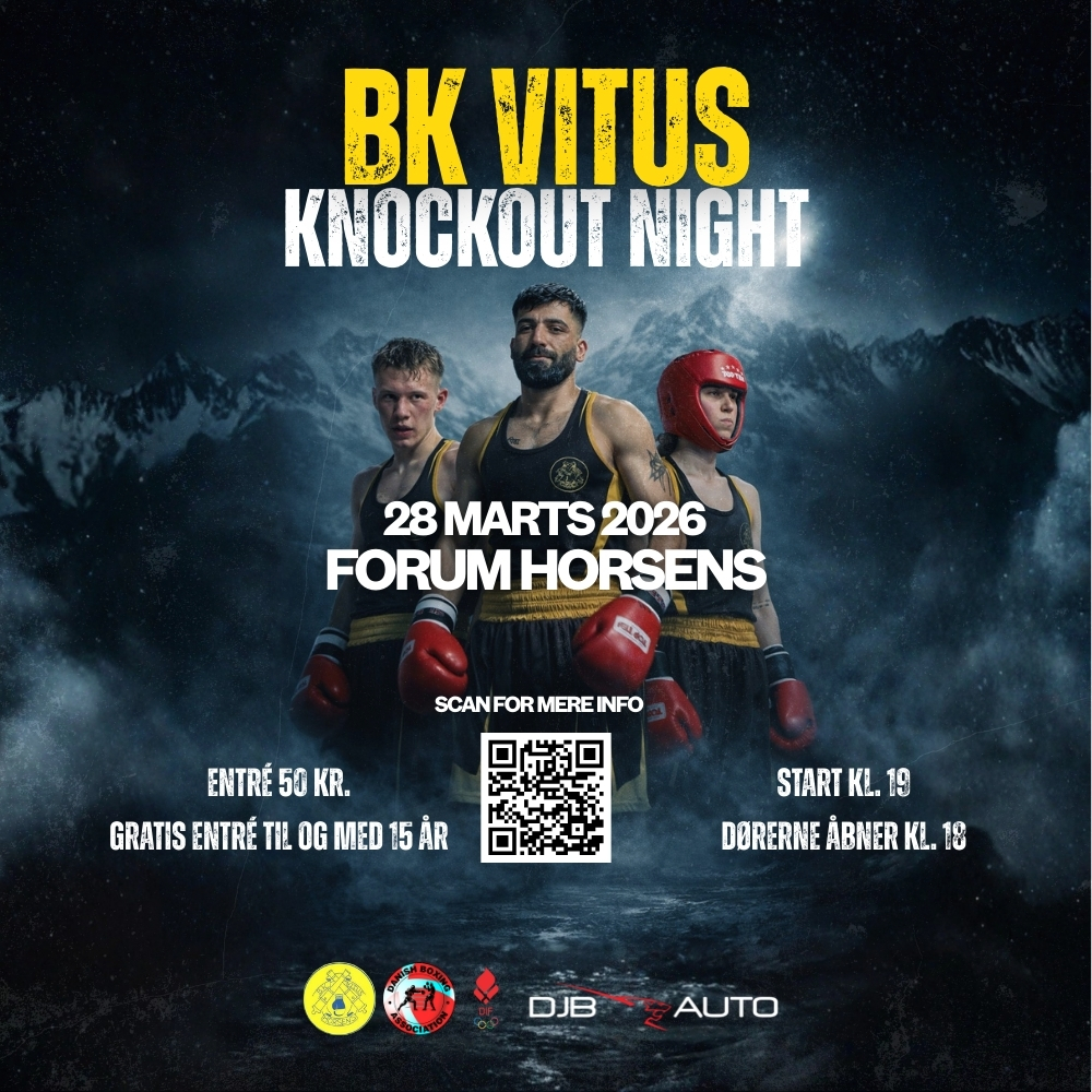 Den 28. marts 2026 forvandles Forum Horsens til en international boksearena. BK Vitus' egne boksere møder modstandere fra udlandet i en aften fyldt med tempo, intensitet og store øjeblikke. Du behøver ikke være boksefan for at være med, men vil du bare have en aften med stærk underholdning, høj puls og en stemning, der kan mærkes, er Knockout Night det oplagte valg.